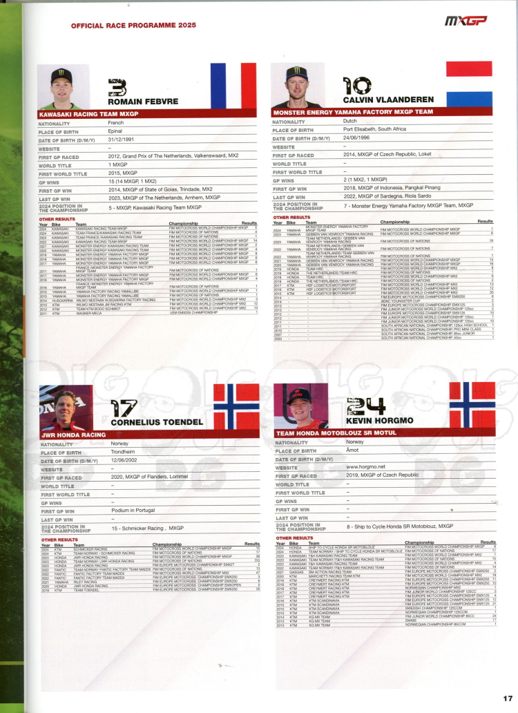 L'IMMENSE ARMOIRE A DENIS : 5.000 PROGRAMMES DE MOTO-CROSS CLASSES PAR ANNEE