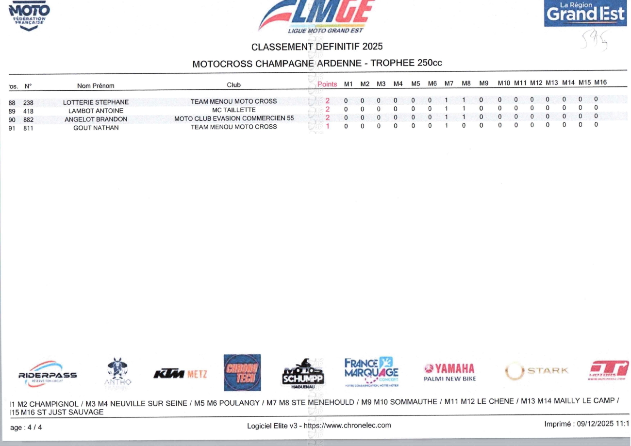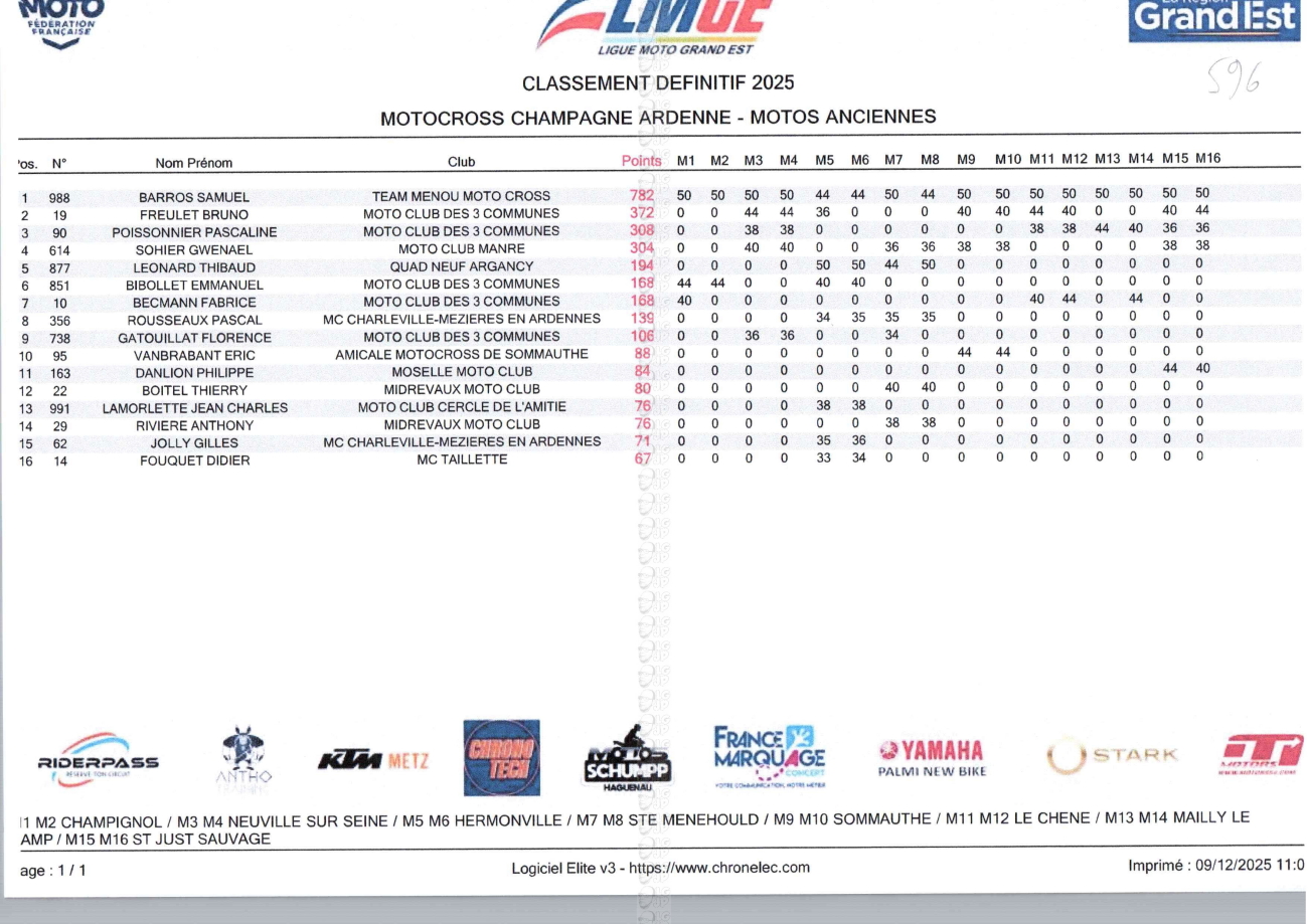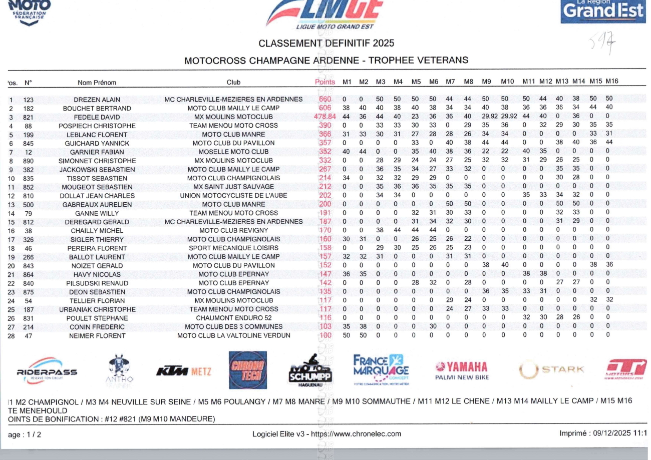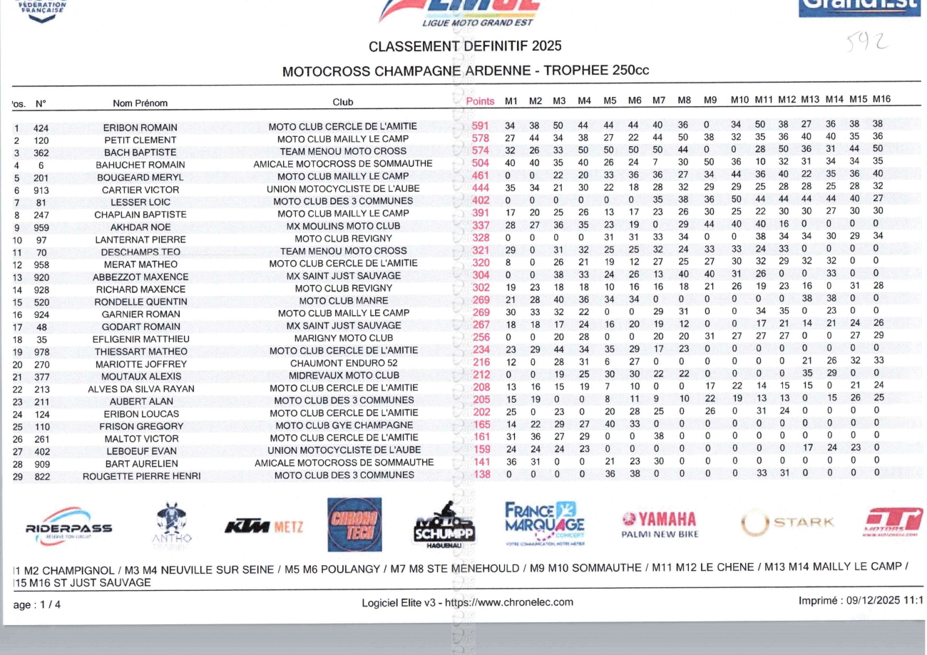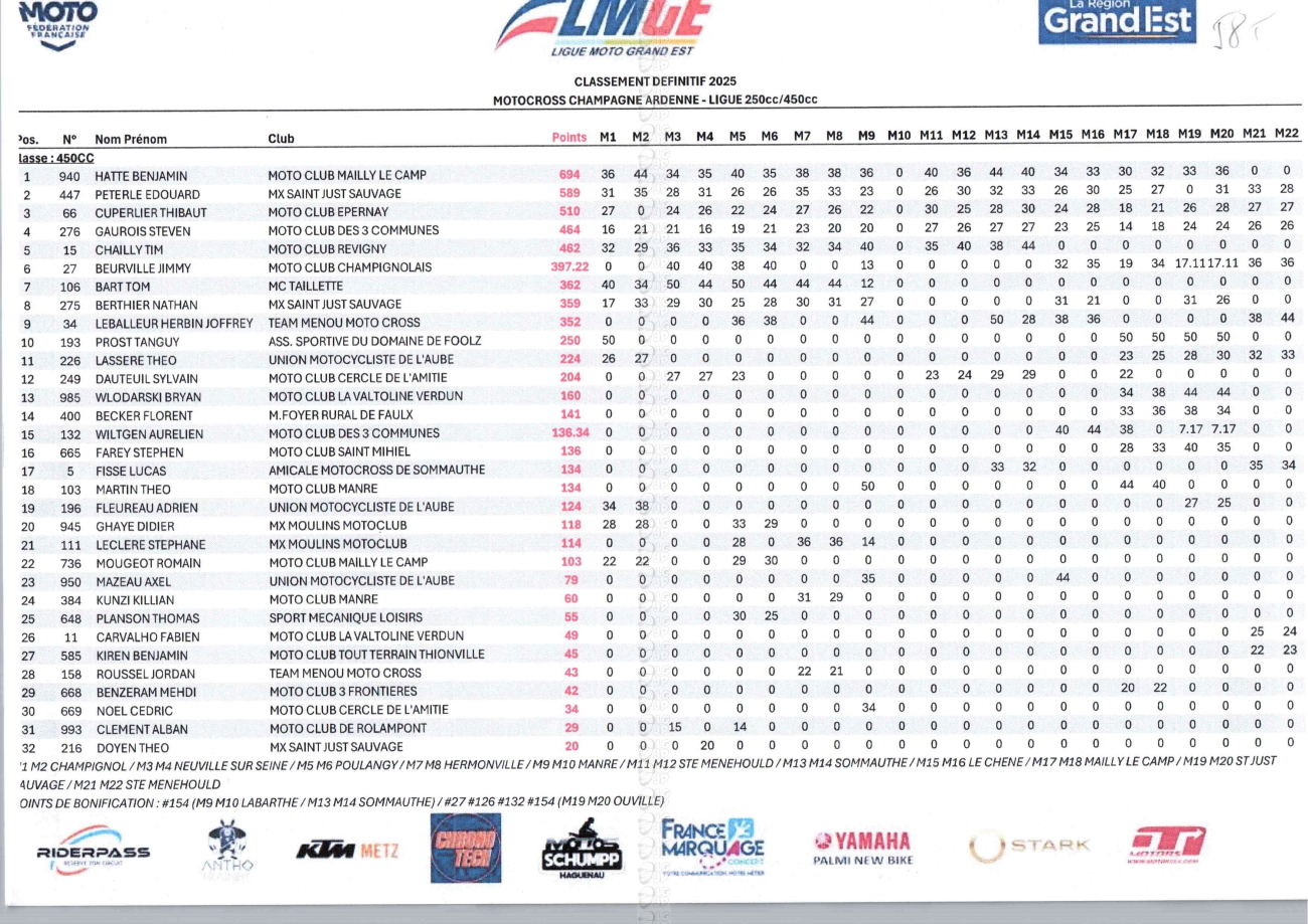 CLASSEMENTS DES CHAMPIONNATS DE CHAMPAGNE