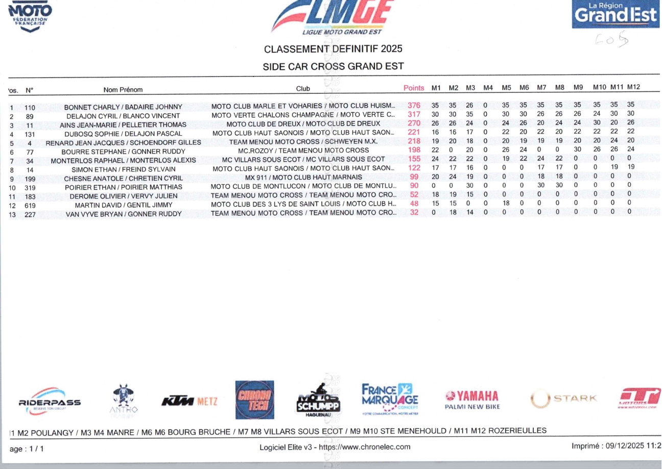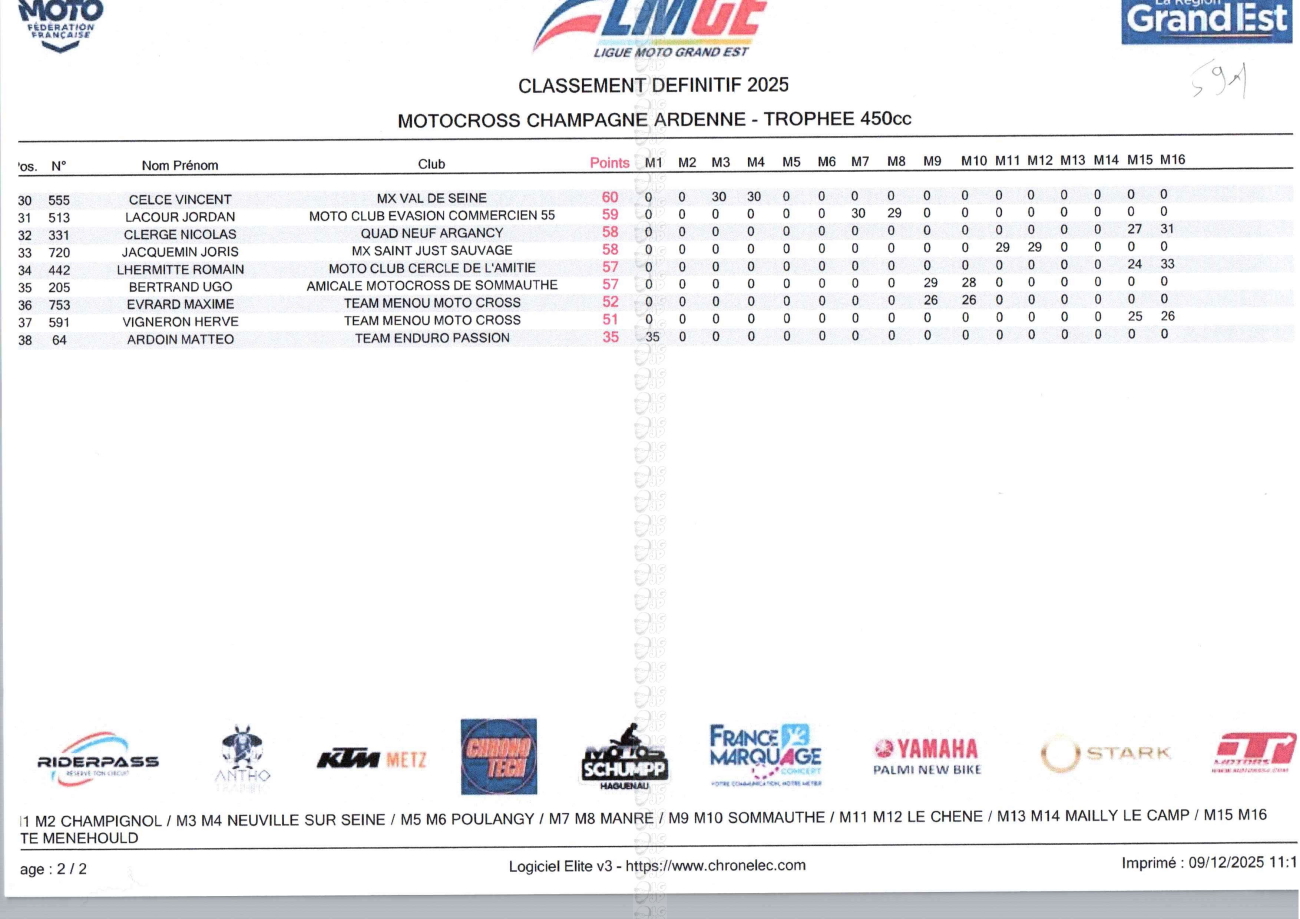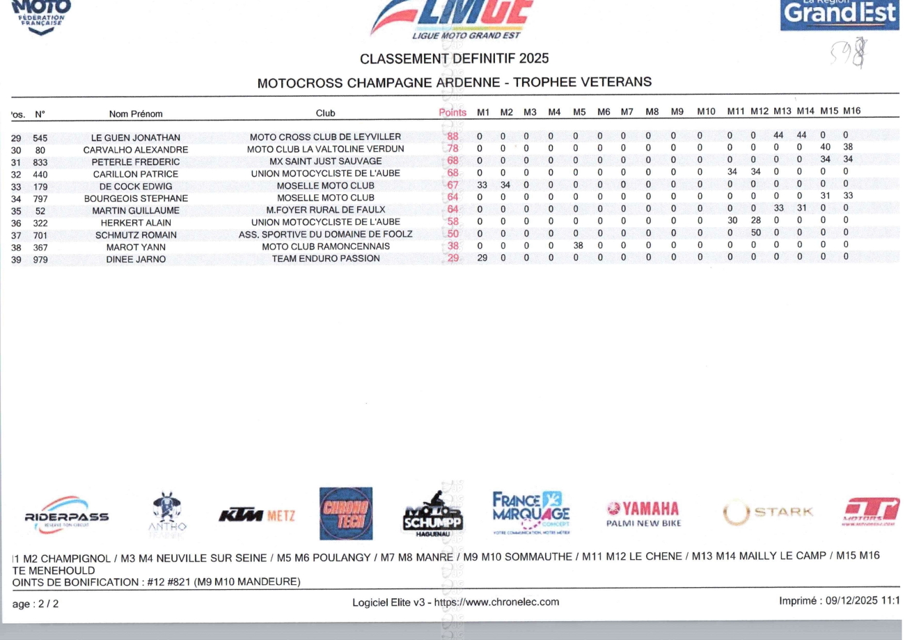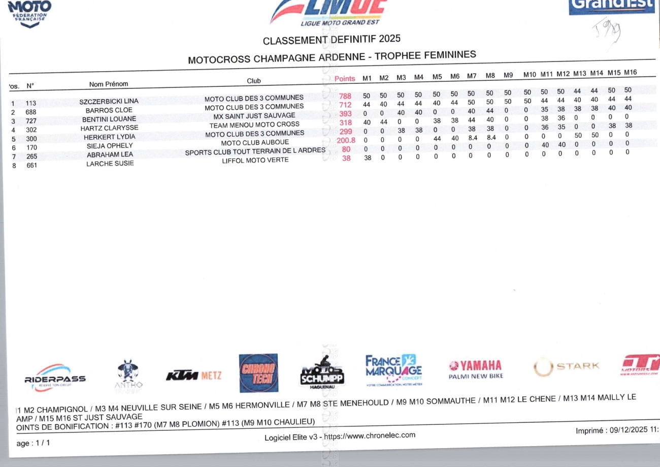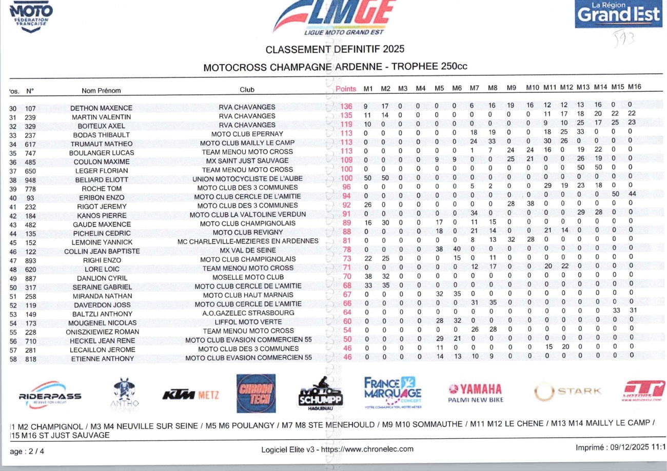 CLASSEMENTS DES CHAMPIONNATS DE CHAMPAGNE
